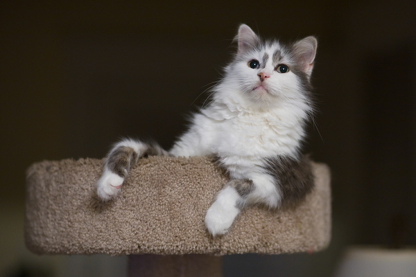 Buddha owns the top of the old cat tree, but Otto is clearly comfortable being on top of the new one.