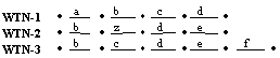 The first WTN is designated as the base WTN from which the composite WTN is developed. We align the second WTN to the base WTN using the DP alignment protocol and augment the base WTN with word transition arcs from the second WTN as appropriate. The alignment yields a sequence of correspondence sets between WTN-BASE and WTN-2. Figure 3 shows the 5 correspondence sets generated by the alignment between WTN-BASE and WTN-2.