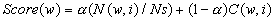 , to be the trade off between using word frequency and confidence scores. The general scoring formula is: