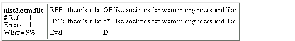 The word error rate for Nist3 is 39.4%, an incremental reduction in word error rate of 5.6%, or a 12.5% relative reduction in word error rate. The performance differences between Nist1, Nist2, and Nist3, are slight, and may by due to non-optimal parameter settings.