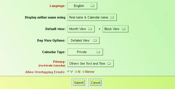 This form lets you select options related to calendar display.