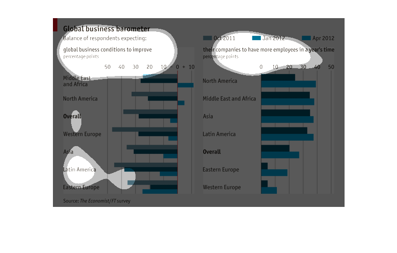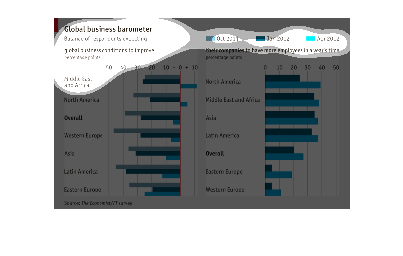 This bar graph is a global business barometer for fall 2011 to spring 2012. The graph is mostly