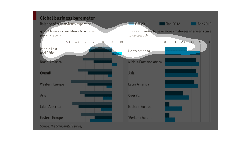 This chart depicts the business outlook for improvement is various places worldwide and indicates