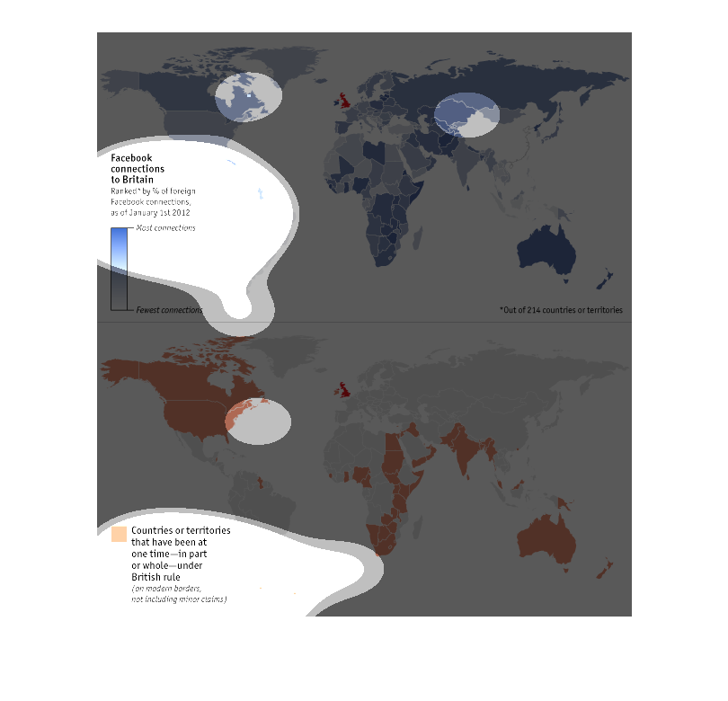 The first image shows the number of connections people have to Britain on facebook. I think