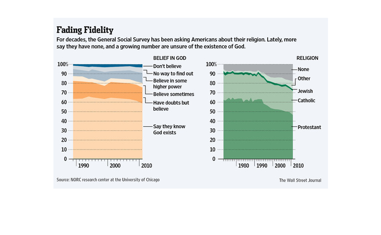 This study shows the decline in society's belief in religion and God over the last several