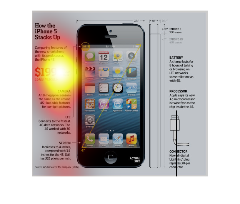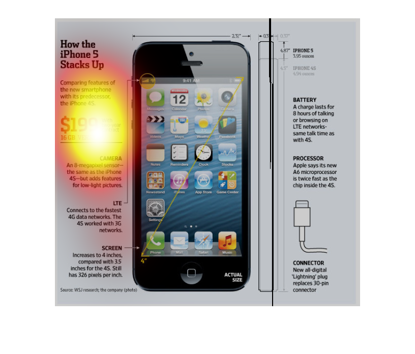 How the iphone 5 stacks up. It's basically a diagram of the iphone showing all the dimensions,