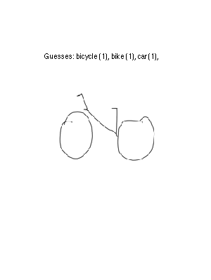 ans = Correct guesses: 12 (40% of all workers) ans = Incorrect guesses: 16 (53% of all workers) ans = No guesses made: 2 (7% of all workers) ans = Total # sketch strokes: 9 ans = Sketch stroke at which guessed: mean=7, std=2.13201 (78% of whole sketch) ans = Number of guesses: mean=2.56667, std=1.47819